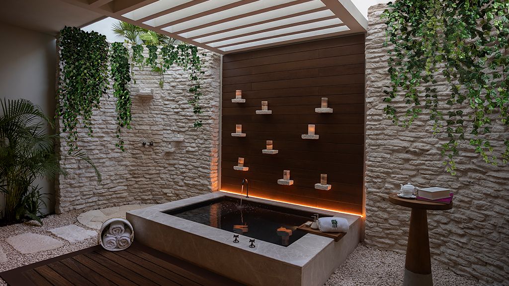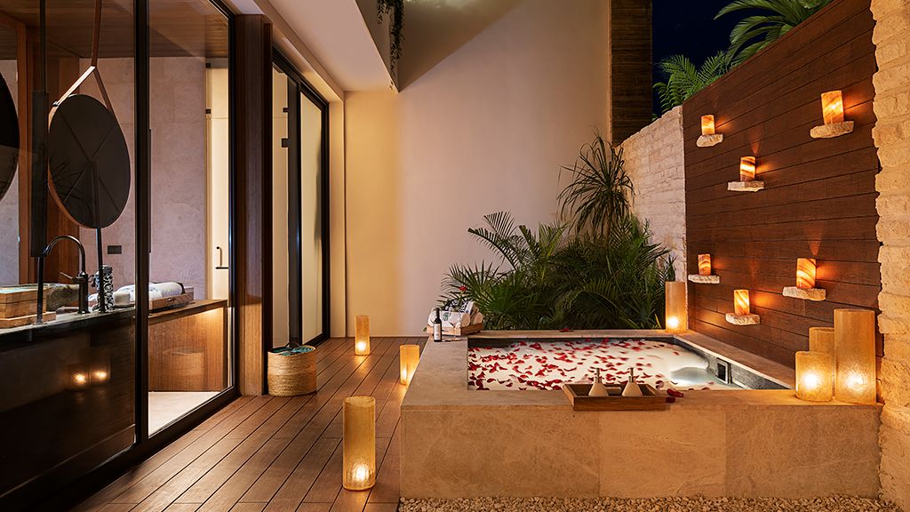 A peaceful and intimate retreat. This idyllic space is the perfect place to relax and enjoy time away together from a hectic life. Each villa comes with separate living and study pavilions and elegantly furnished with Maya inspired designs. Relax in the heated pool or the outdoor jetted bath and let all the stress go.