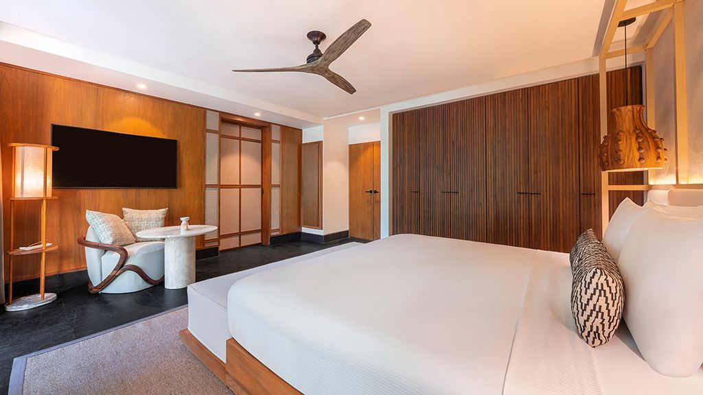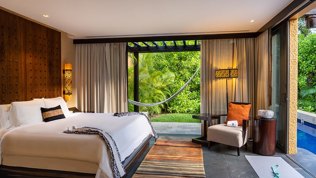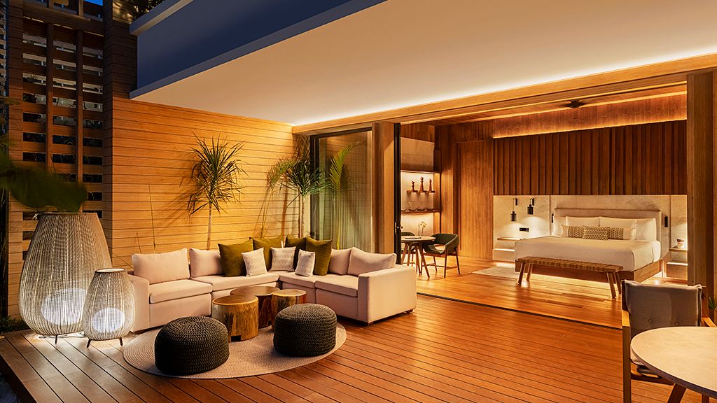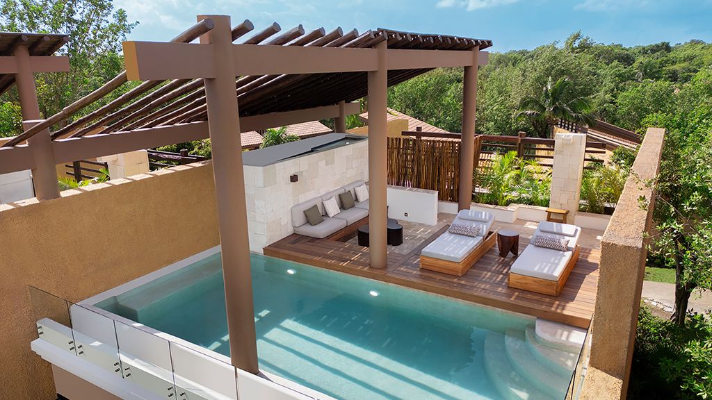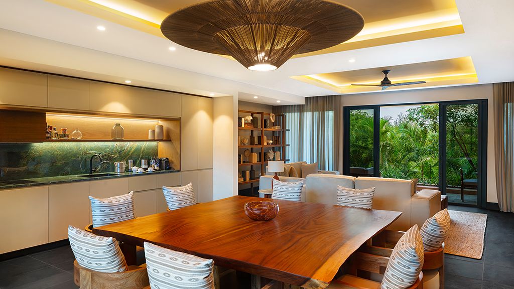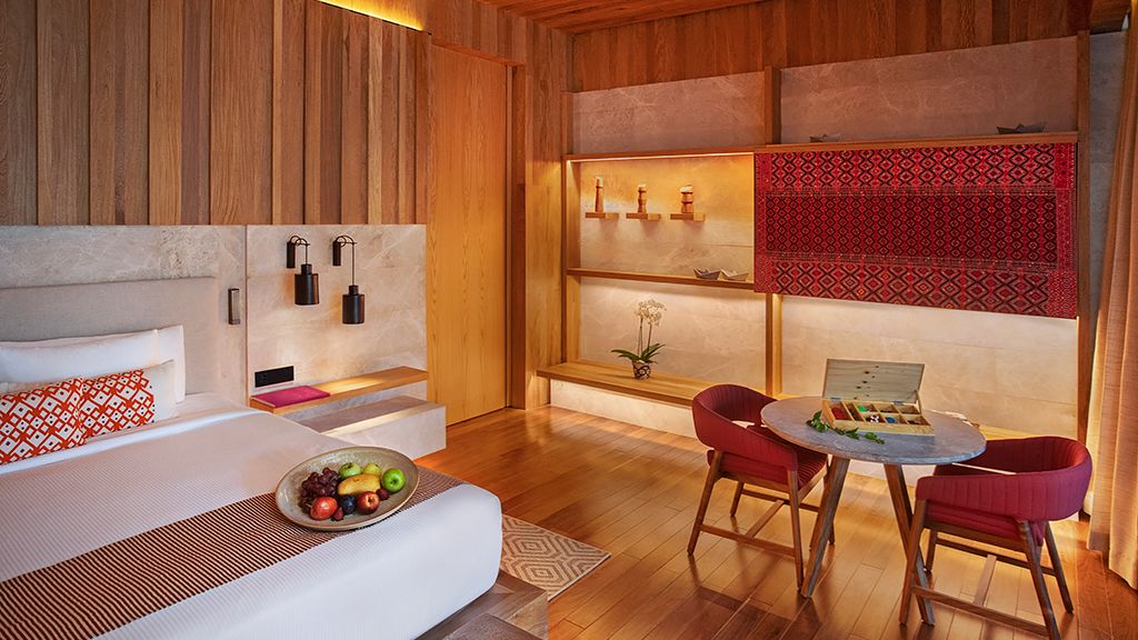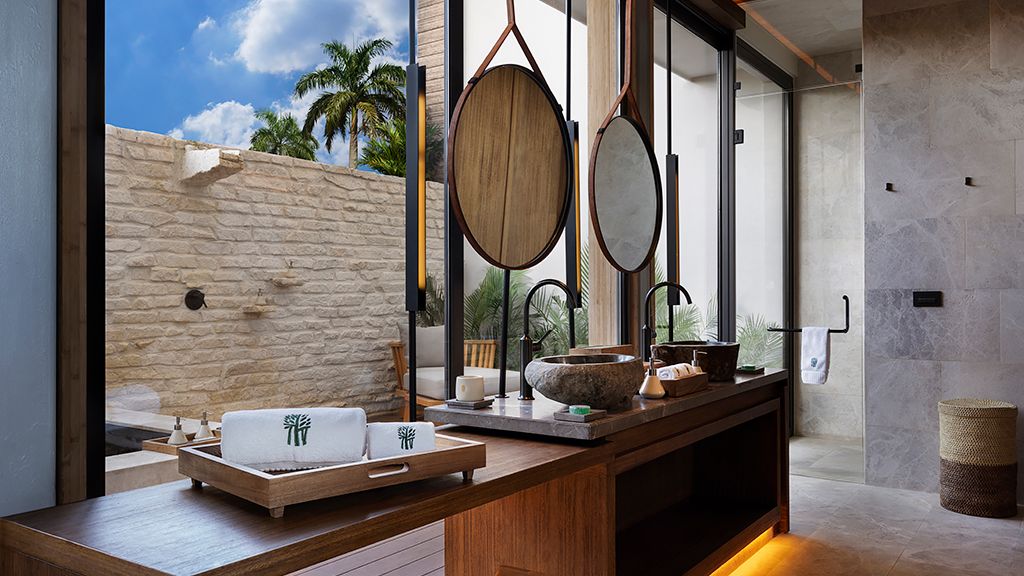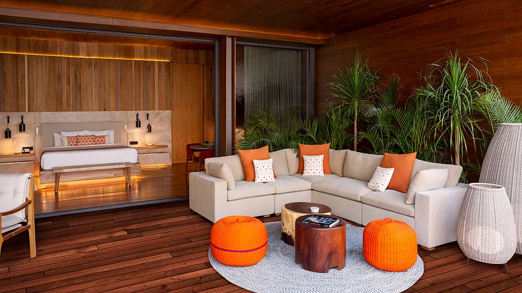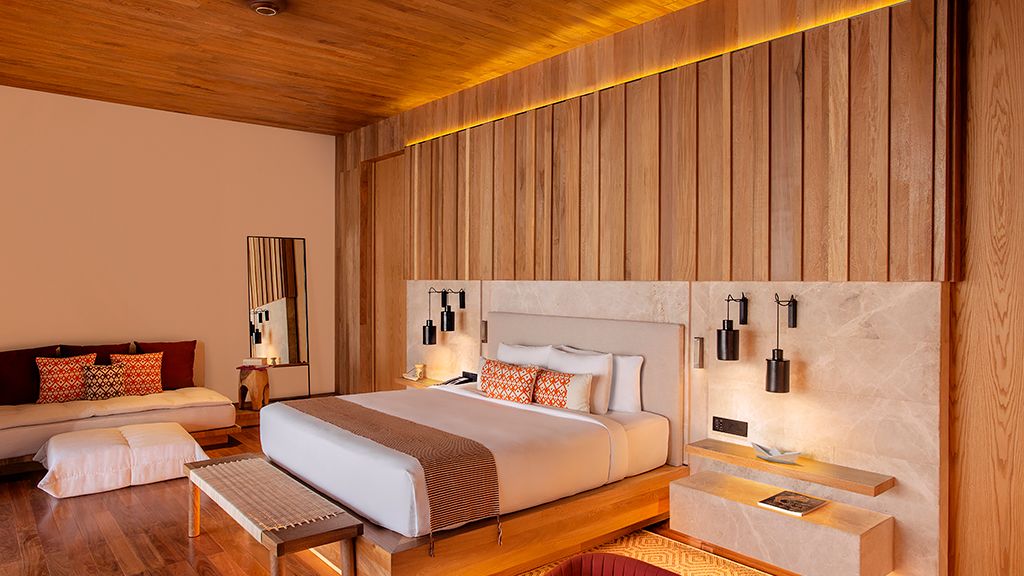 Sitting upon the sugar sand beach of Mayakoba and featuring unhindered views of the shimmering sea, the exquisitely appointed one-bedroom suite offers an exclusive selection of services and amenities. Featuring a heated private plunge pool, an interior patio and an organically-infused atmosphere, this suite is the ideal nest to connect with your loved ones to the sway of the ocean breeze.