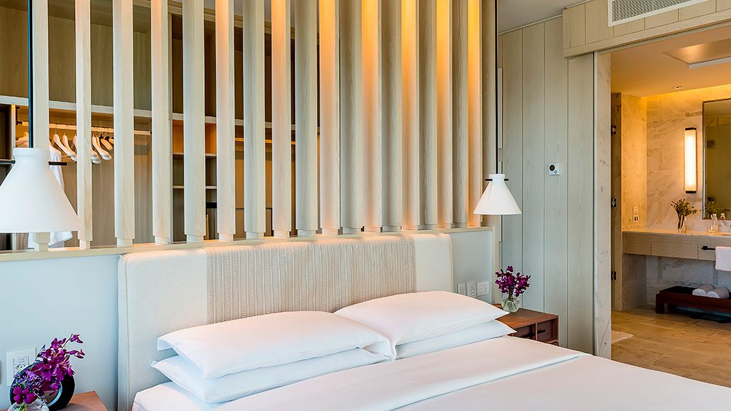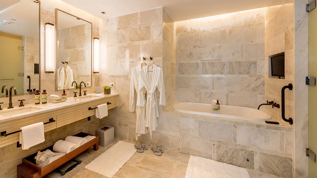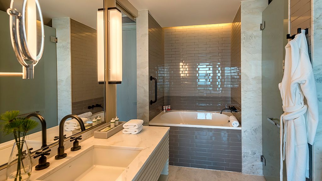 Delight in this spacious and grand suite that features a living room and a dining area, a gourmet kitchen, a walk-in closet, a large bathroom with an immersing bathtub and separate shower, and a balcony with breathtaking ocean views. Enjoy access to the Grand Club Lounge executive floor with a breakfast buffet and daily cocktail service, including alcoholic and nonalcoholic beverages.