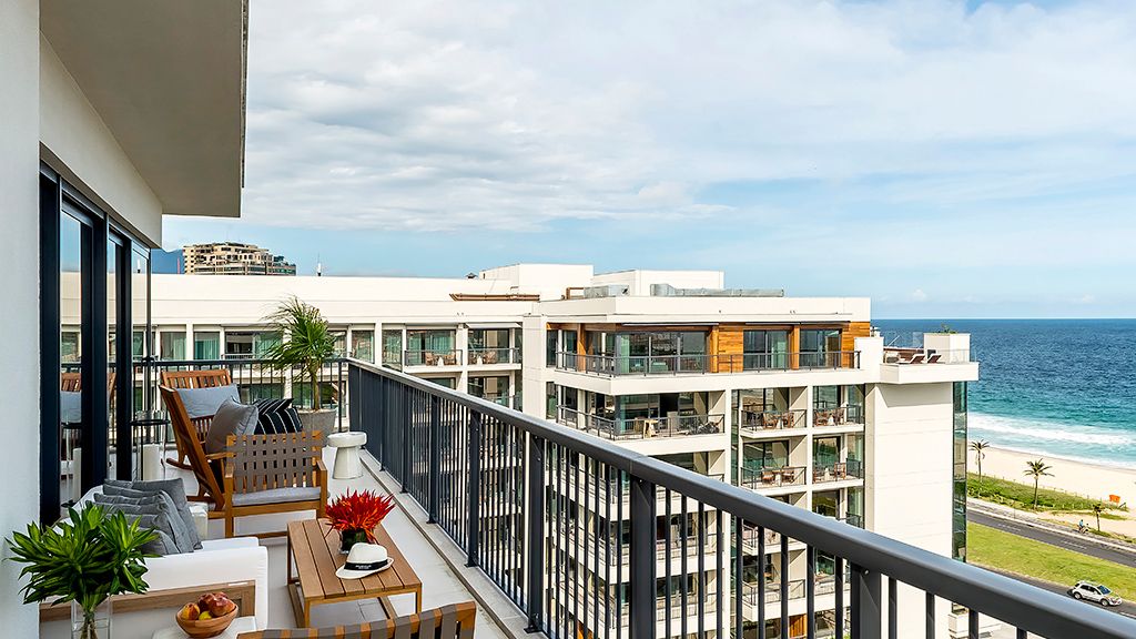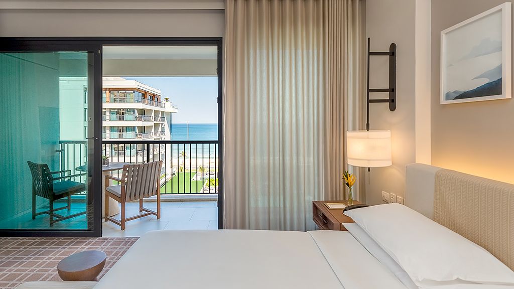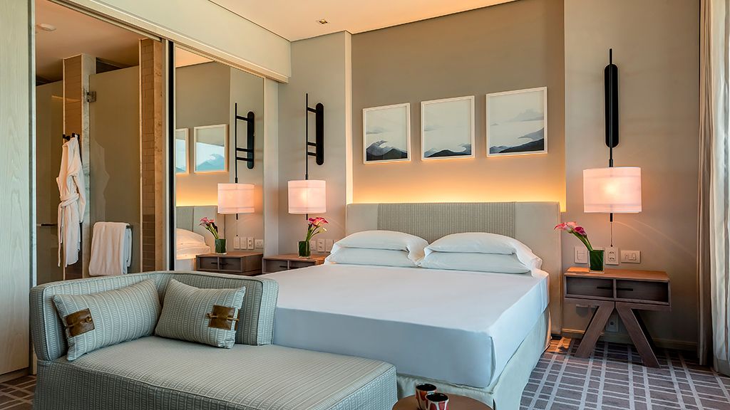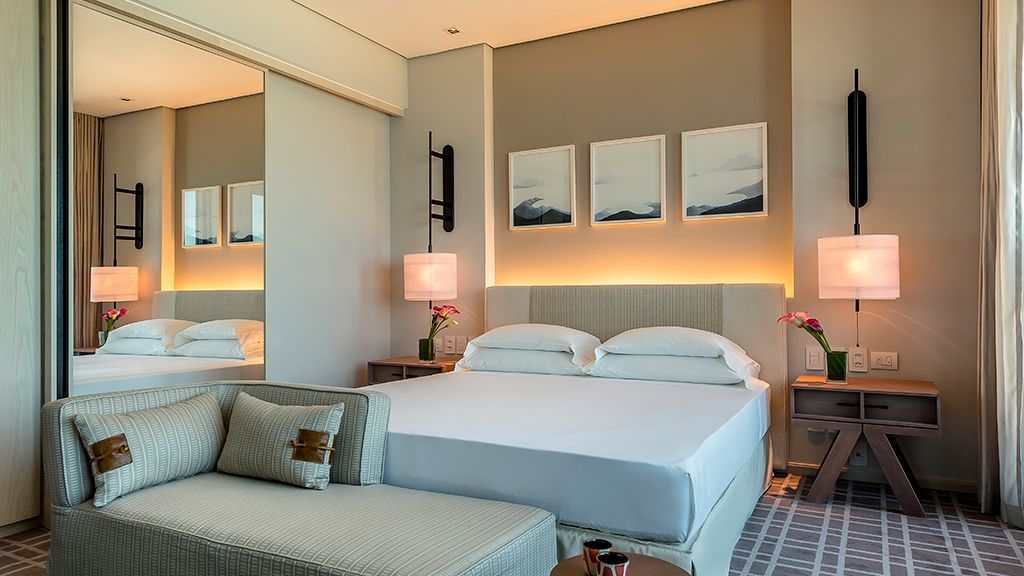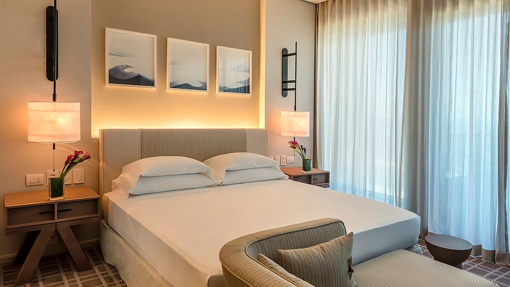 Relax in this spacious suite that features a private balcony, a walk-in closet, a desk, a large bathroom with separate immersing bathtub and shower, and views to the ocean and the Marapendi Lagoon. Enjoy the access to the Grand Club, executive floor, with daily cocktail service and alcoholic and nonalcoholic beverages included.