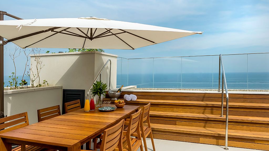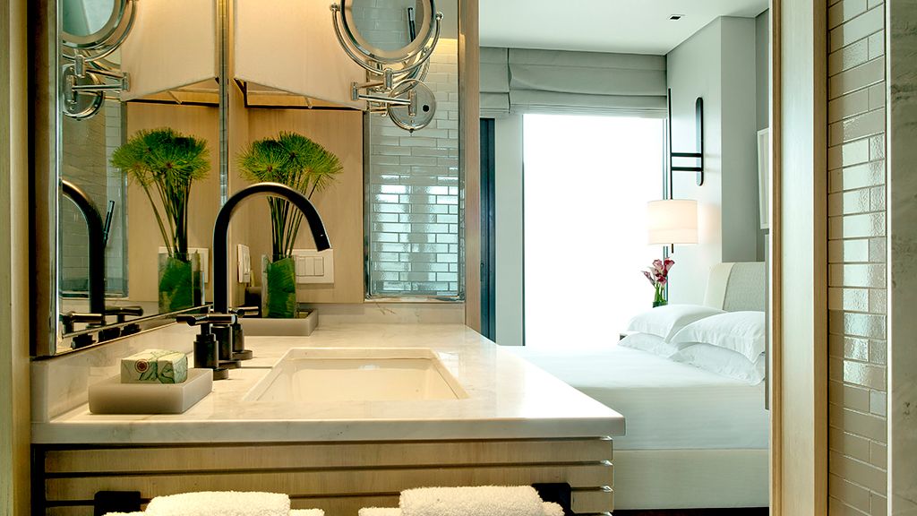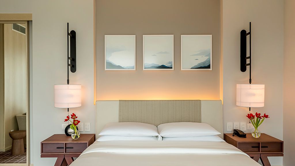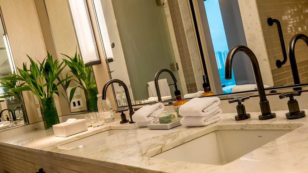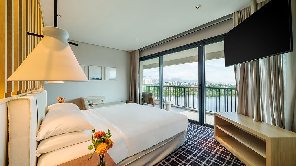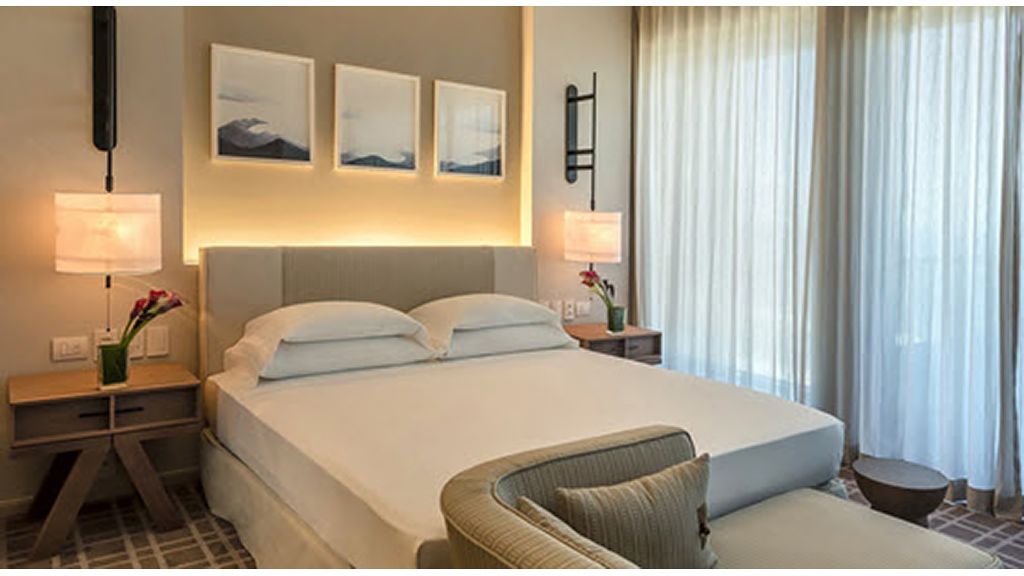 Relax in this spacious suite that features a private balcony, a walk-in closet, a desk, a large bathroom with separate immersing bathtub and shower, and views to the ocean and the Marapendi Lagoon. Enjoy the access to the Grand Club, executive floor, with daily cocktail service and alcoholic and nonalcoholic beverages included.