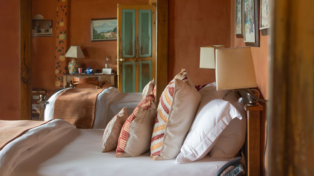 1 king bed – 44sqm /473sqft – sitting area – desk – terrace – lake view – decorated with paintings by artists from guatemala, blue walls fine furniture and a large terrace. – located in the main house – en-suite bathroom with shower – hairdryer – bathrobes and slippers – makena toiletries – complimentary wi-fi – telephone – minibar – safe – minimum age requirement: 10 years and up – 1 extra bed possible on request – charges apply – 3 persons maximum