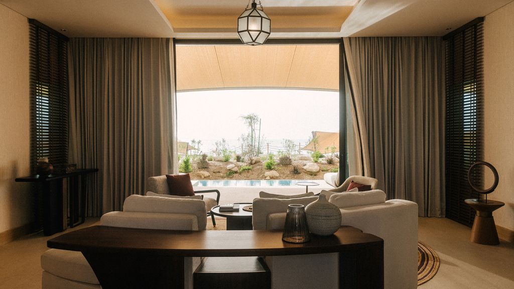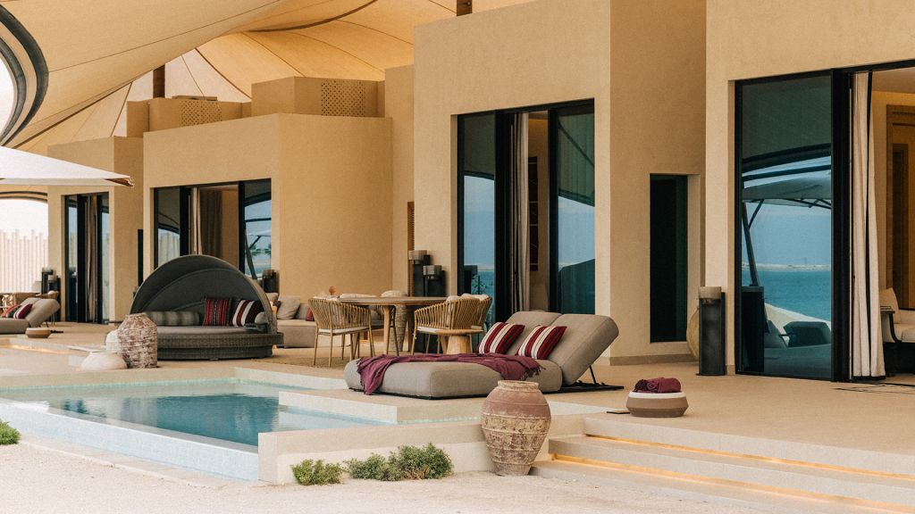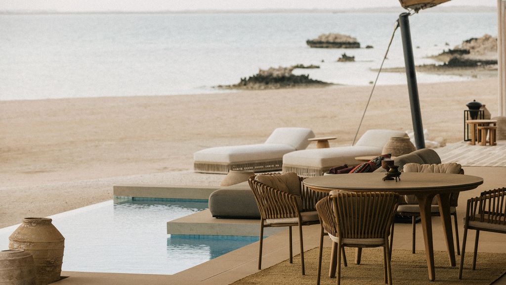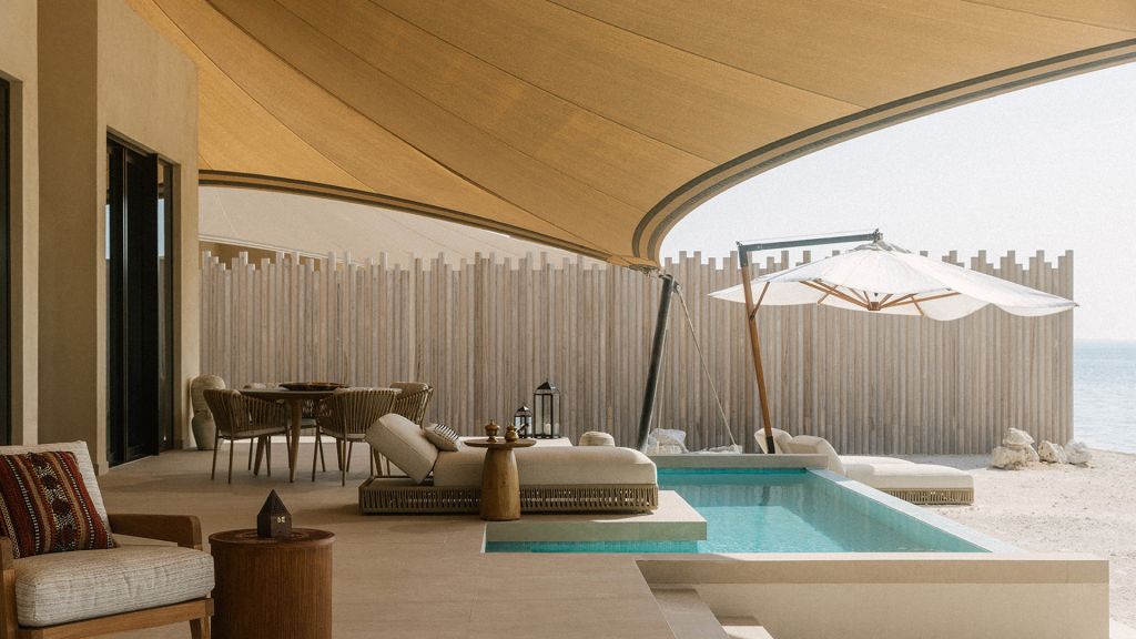 Our qataf villa is an ideal choice for families or groups seeking abundant space, luxurious comfort and sweeping sea views. This combination of two neighboring villas features two bedrooms, two private plunge pools, direct beach front access and an expansive deck perfect for relaxation and social gatherings, providing a beautiful backdrop to unwind and immerse in the surroundings’ natural beauty. Drawing inspiration from the rich essence of qatar, the decor of all our villas features soothing earthy tones, natural textures and curated local design elements, providing a modern interpretation of the region's cultural tapestry.
