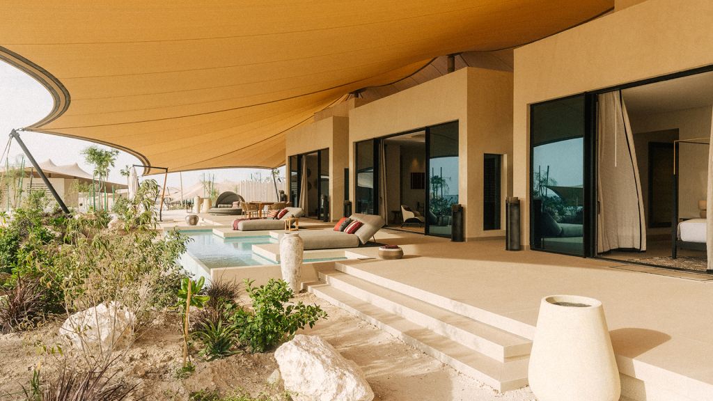 Our zekreet villa is an ideal choice for families or groups seeking abundant space and luxurious comfort. This combination of two neighboring one-bedroom villas features two private plunge pools, and an expansive deck perfect for relaxation and social gatherings, providing a beautiful backdrop to unwind and immerse in the surroundings’ natural beauty. Drawing inspiration from the rich essence of qatar, the decor of all our villas features soothing earthy tones, natural textures and curated local design elements, providing a modern interpretation of the region's cultural tapestry.