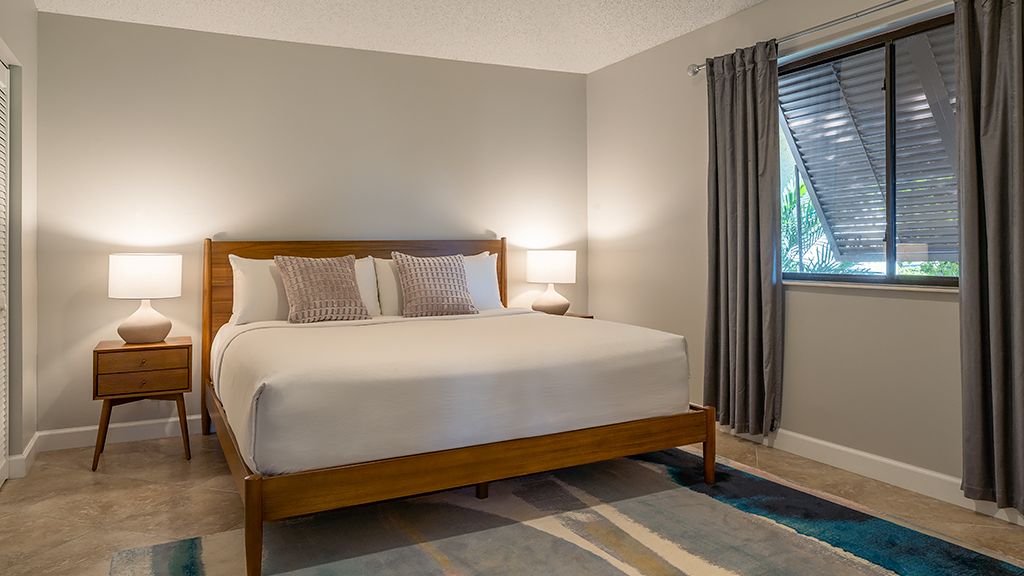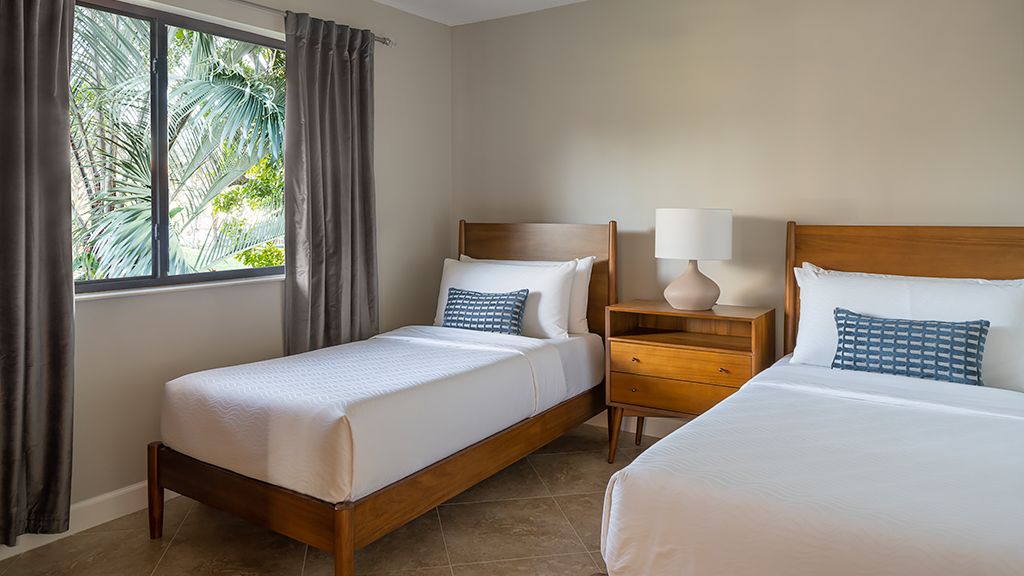 Twenty-one stunning serena & lily-designed cottages bring the coast to the greens in elevated leisure. Residentially-appointed, crisp, and stylish, each 1, 200 sq. Ft. Two-bedroom, two-bath retreat delivers unsurpassed privacy and prestige, plus tropical outdoor space that personifies palm beach bliss. This beautiful cottage has one king bed and two double beds.