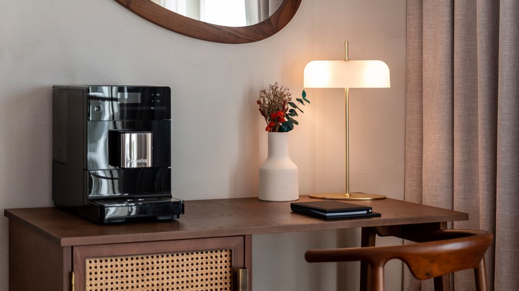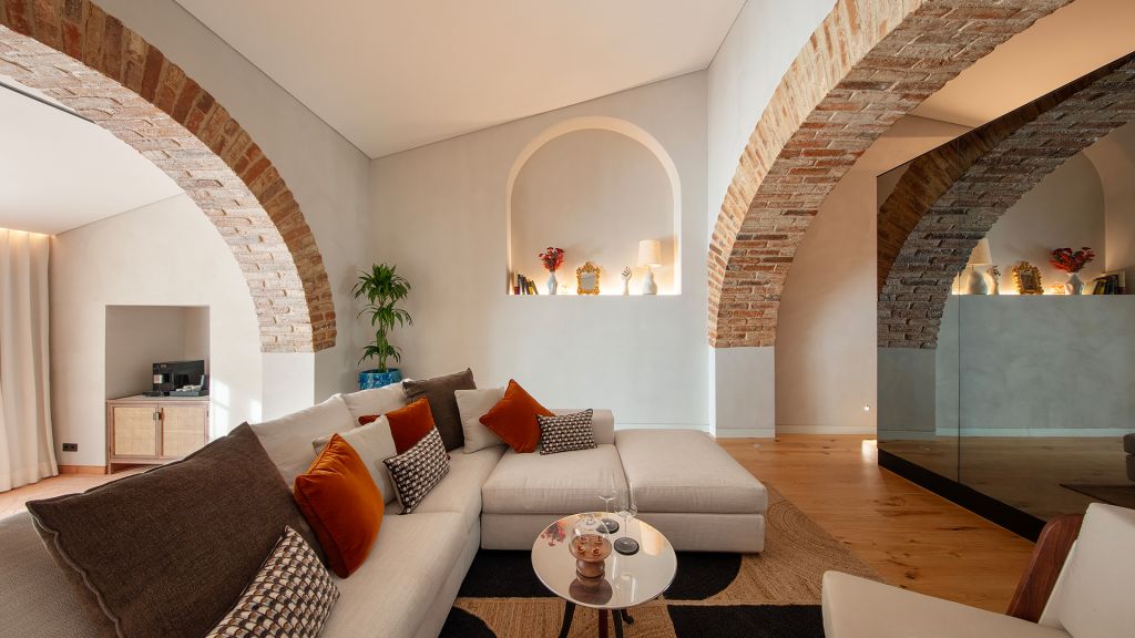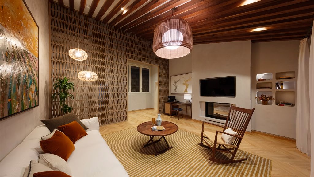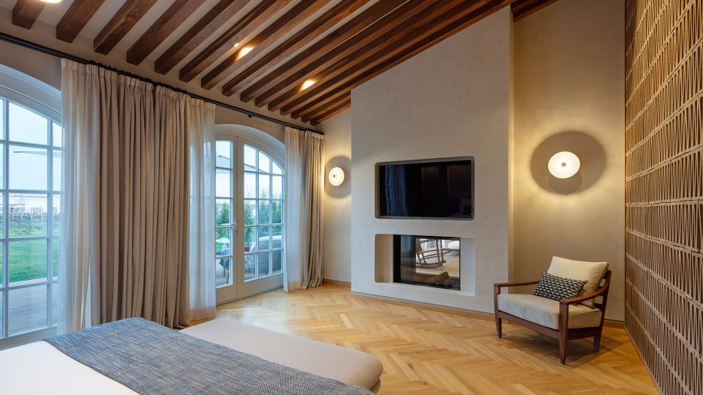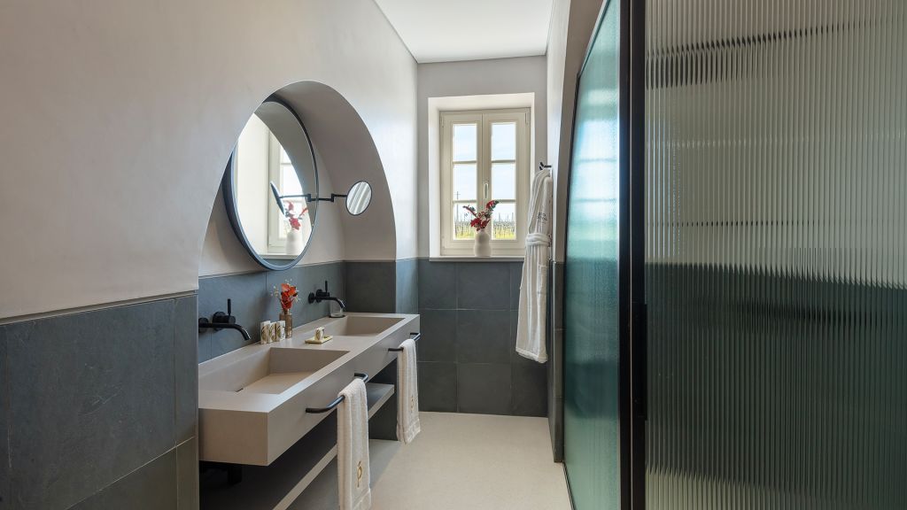 This average 24 sqm/245 sft - rooms are located in the historic wing of the property and are harmoniously decorated in earth tones with minimalist elements in different woods and textures. With a double or twin bed and bathroom with shower, all the rooms overlook the property and its vineyards.