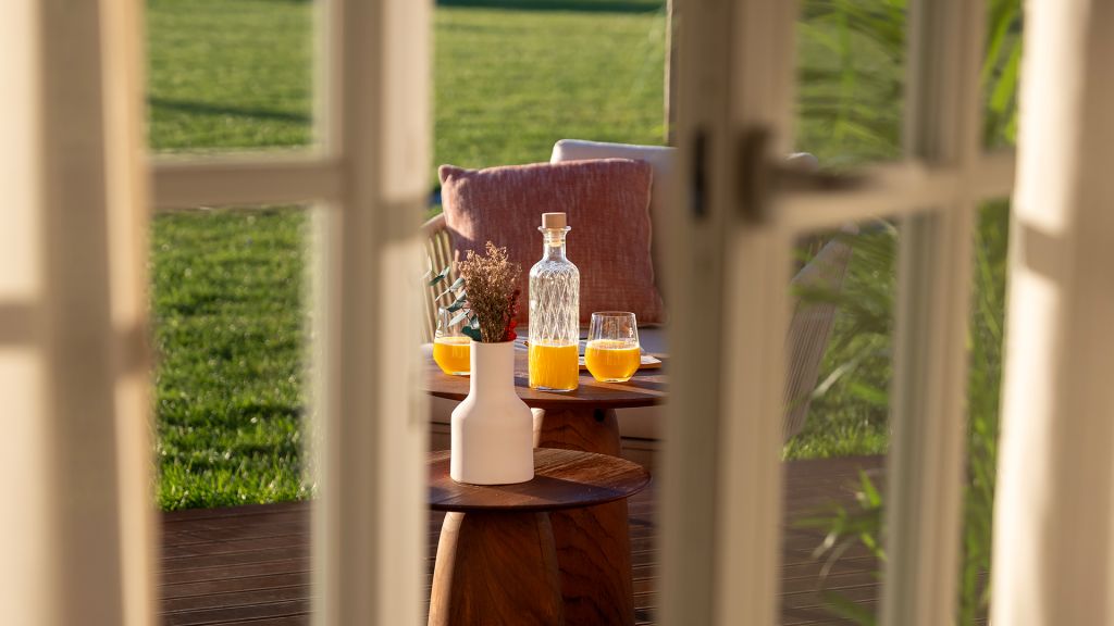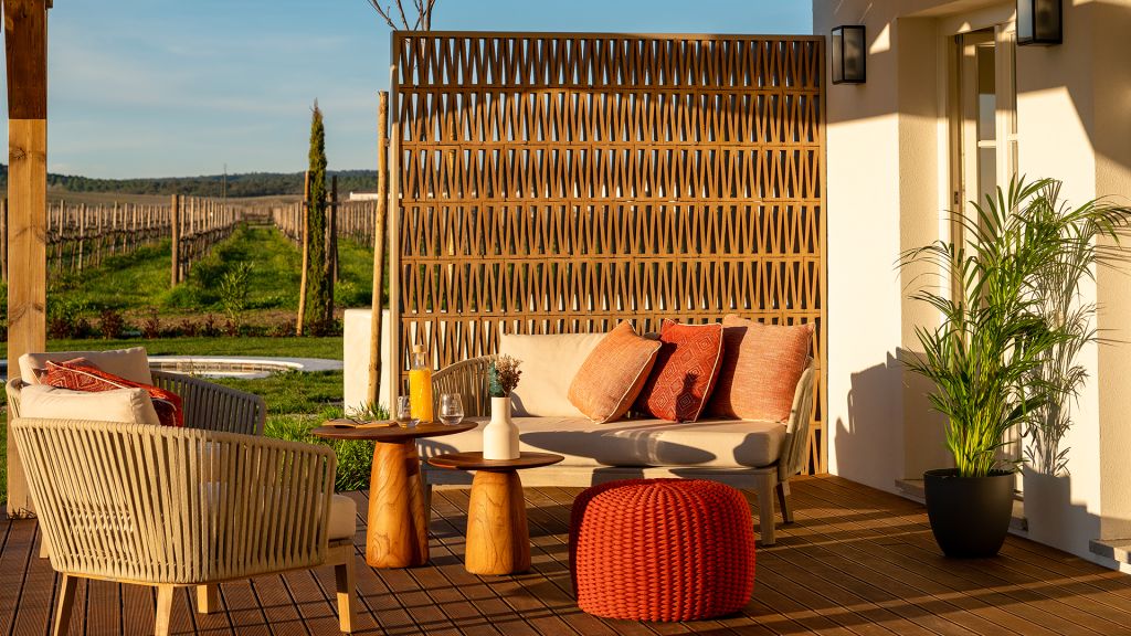 This average 30 squared meter rooms are located in the historic wing of the property and are harmoniously decorated in earth tones with minimalist elements in different woods and textures. With a double or twin bed, these rooms may offer a seating area or desk, and bathroom with shower. All of the rooms have a furnished outdoor deck with extensive views of the property, its vineyards and gardens.