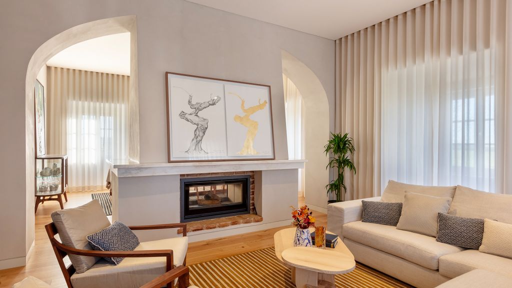 This exclusive design suites are located in the north wing of the property, and are chosen spaces for their seclusion and privacy. With around 100m2, these suites have a large resting area with a queen size bed and a cozy living area that share a double-sided integrated fireplace in their room, perfect for an atmosphere of comfort and relaxation. In the bathroom, in addition to two separate walk in showers, an imposing Italian-design central bathtub stands out under a luminous "open sky" skylight. In the outdoor areas, an elegant private terrace with sunbeds and also a large furnished deck to relax and enjoy a magnificent view of the immensity of vineyards to lose sight.