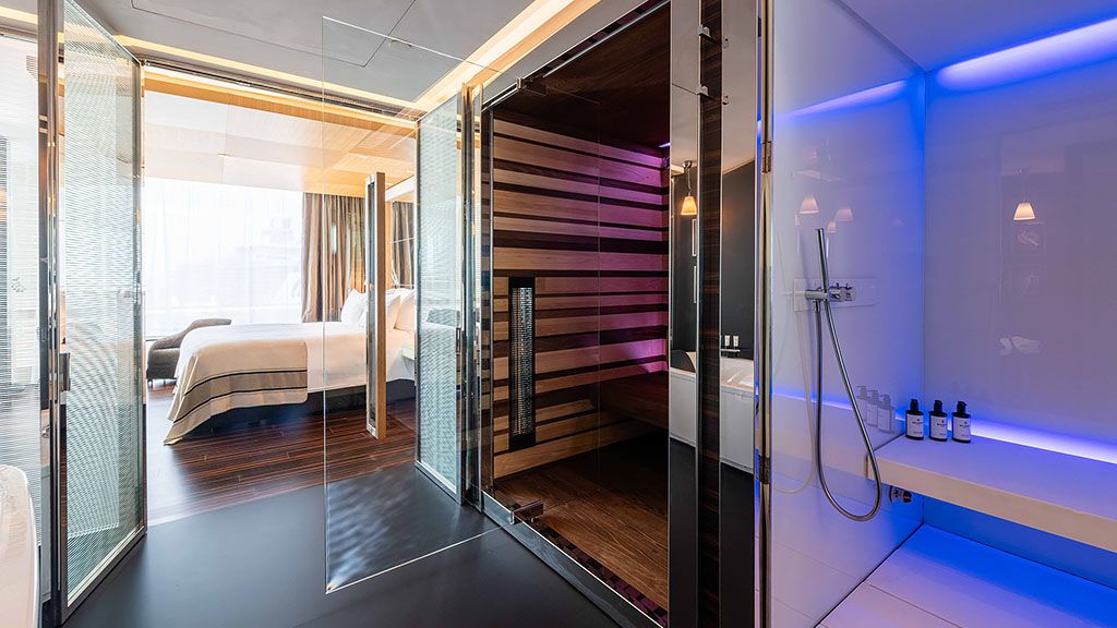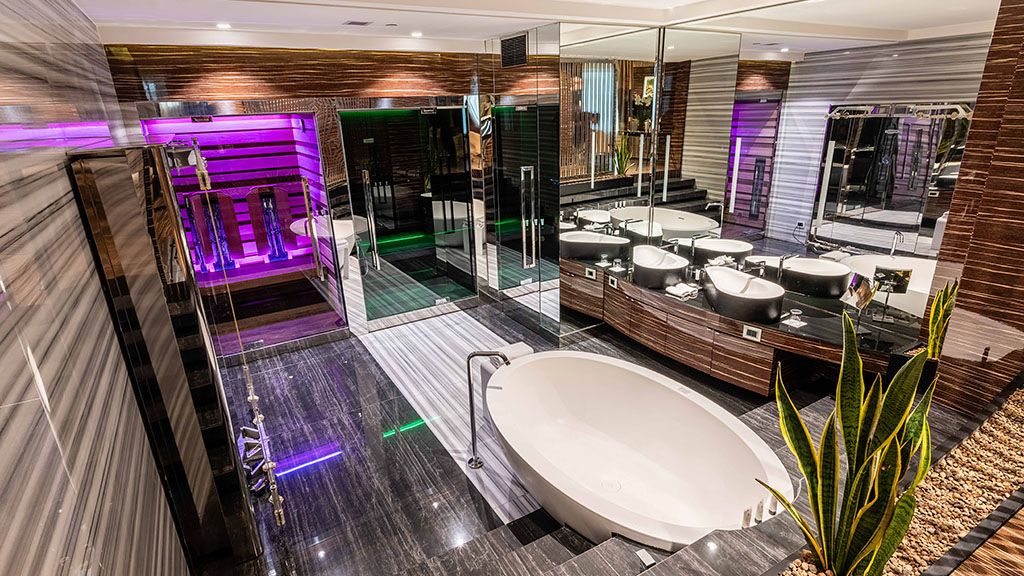 165 sqm- two bedrooms with two king beds- hot tub- shower- sauna and Turkish bath